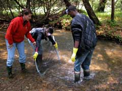 You will collect samples from two stream sites. The length of the first stream site is defined as 10 times the average stream width. The second stream site is determined by the length of the first site and will be located two lengths away from the first site. Conducting investigations above and below areas of concern can save time and lead from symptoms to causes.